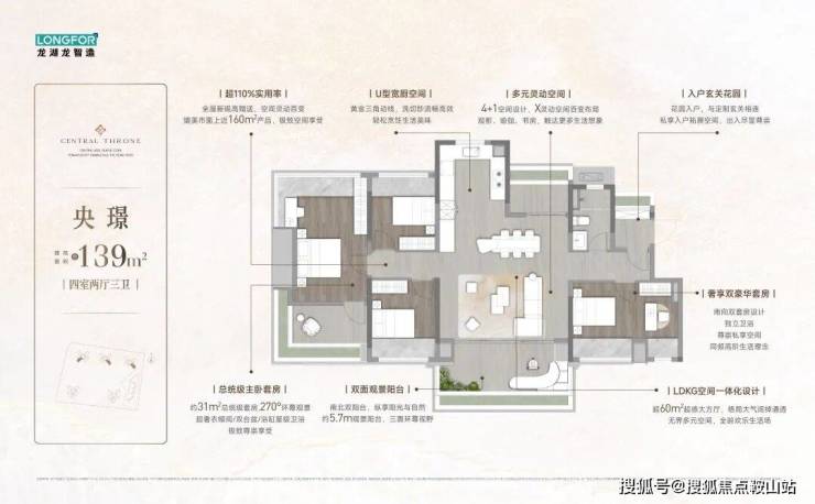 户型实用率高:得房率普遍超110%,部分达130%,户型涵盖95–139㎡,空间灵活实用。
