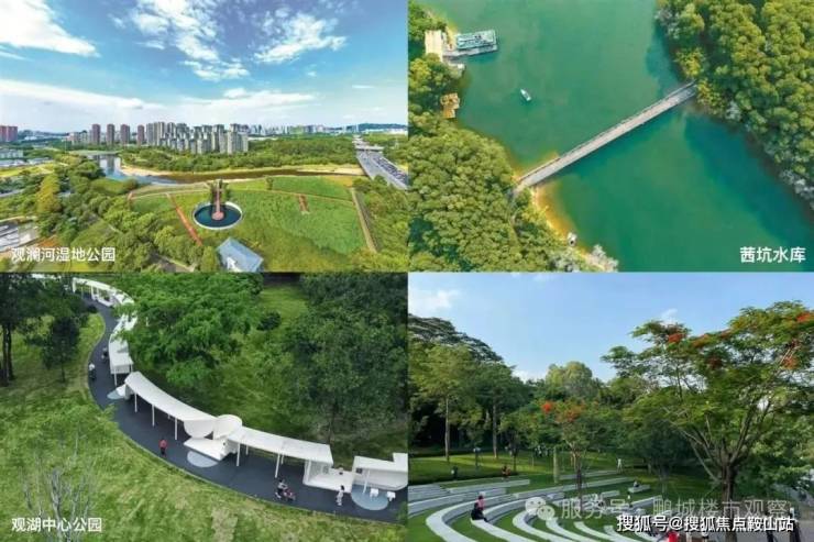 生态环境较好:周边有观澜湖生态体育公园、观澜民法公园、观澜体育公园、观澜河湿地公园、长湖公园及茜坑水库等,为居民提供了休闲健身的场所。社区内还打造了 1.9 万㎡“新 SMILE 系园林”,融入二十四节气植物系统,配备 550 米健康跑道、儿童游乐区等,满足全龄需求。