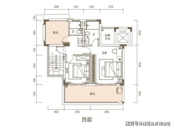 上叠面积134㎡(为3.4层)三房两厅三卫(可实现3➕1房)赠送顶楼露台