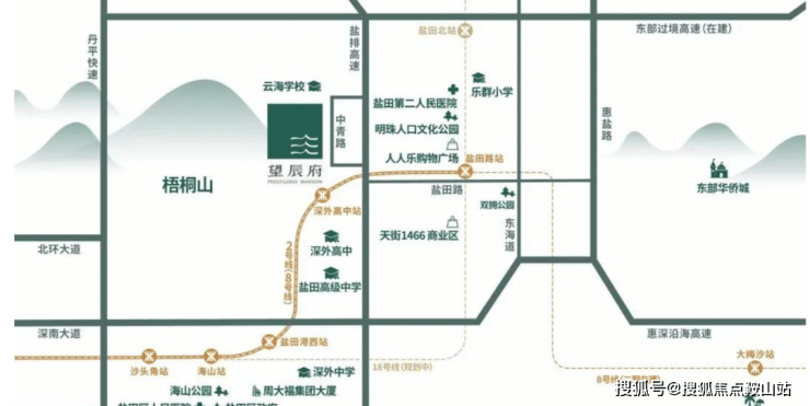 8号线深外高中站,4站进罗湖,直通福田CBD等中心区域,18号线(规划)贯通深圳东西双核快速接驳轨道交通路网拥莲塘、沙头角双口岸驾车通关直抵香港,畅享深港生活圈,盐排高速、惠深沿海高速、武深高速三大高速速联湾区,接驳全球。