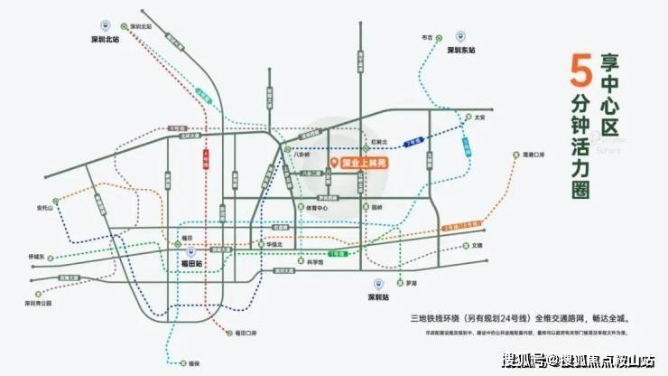 城市维度方面:3地铁站+3地铁线+3口岸,2站福田CBD、4站深圳北站/福田高铁站,快速连接全城,通达湾区。