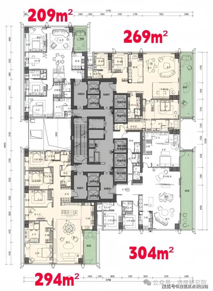 · 269-294㎡户型: 通常是四房以上大户型,注重家庭互动空间与个人私密空间的结合。