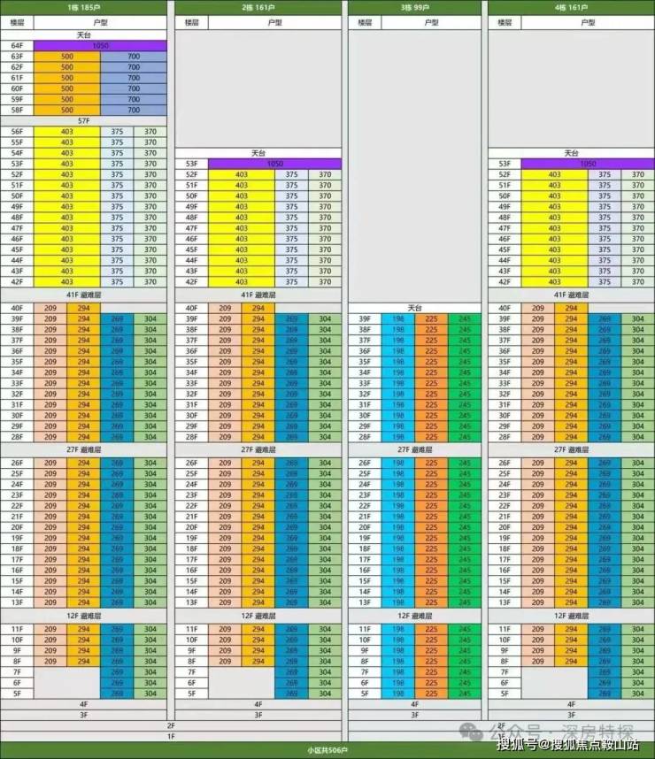 低区(5层起,150米内):约209-304㎡四房以上大户型。
