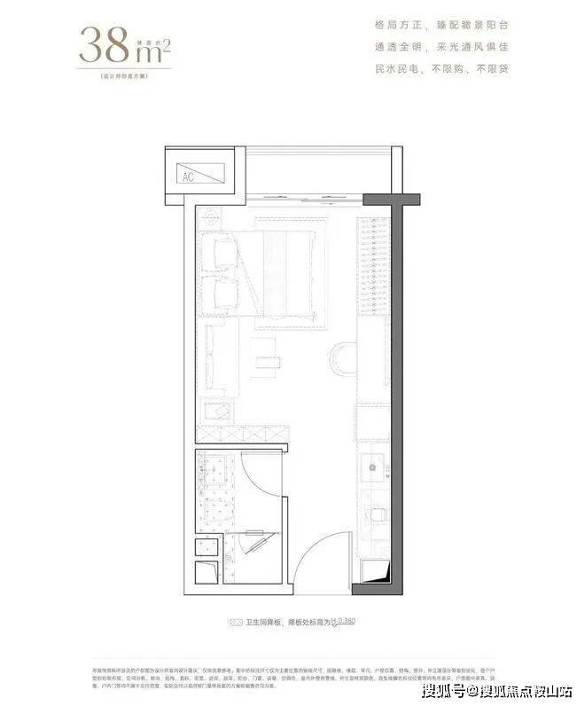 38平单房,麻雀虽小但五脏俱全,带阳台通燃气,卫浴干湿分离,可改造为小两房。