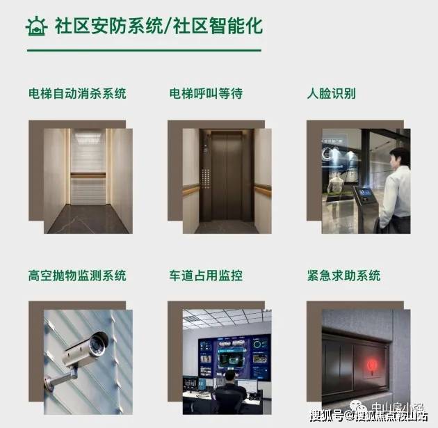 720度全社区智能安防、车道占用系统、紧急救助按钮、电梯自动消杀系统、人脸识别系统、电梯呼叫等待.
