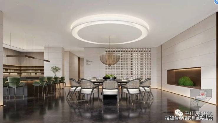 会所分为3个功能区域,包含业主私宴餐饮厅(影音厅、茶室、餐饮宴会厅),阳光有氧书吧,邻水主题健身区域