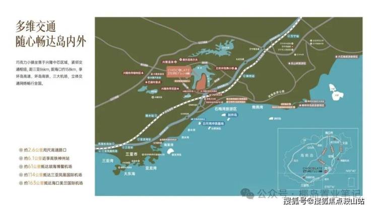 距三亚86KM,距海口约158KM,享环岛高速、环岛高铁、三大机场