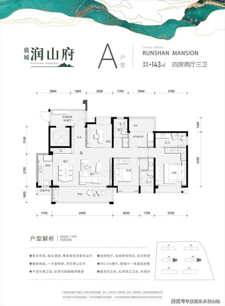 A户型 建筑面积:约143㎡房型:四房两厅三卫