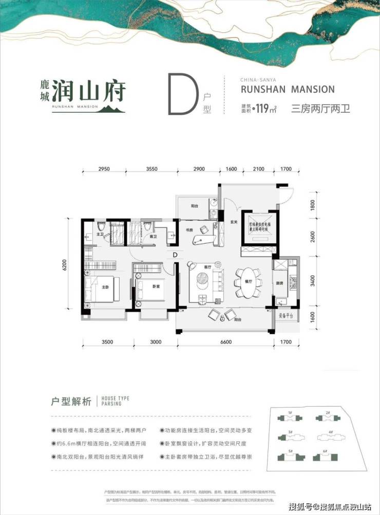 D户型 建筑面积:约119㎡房型:三房两厅两卫