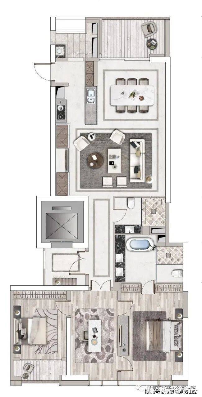 B座产品:约47-85-92-115-125㎡ 1-3房云端美寓,建筑面积约115㎡2+1房2厅1厅