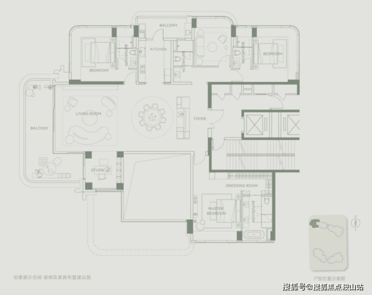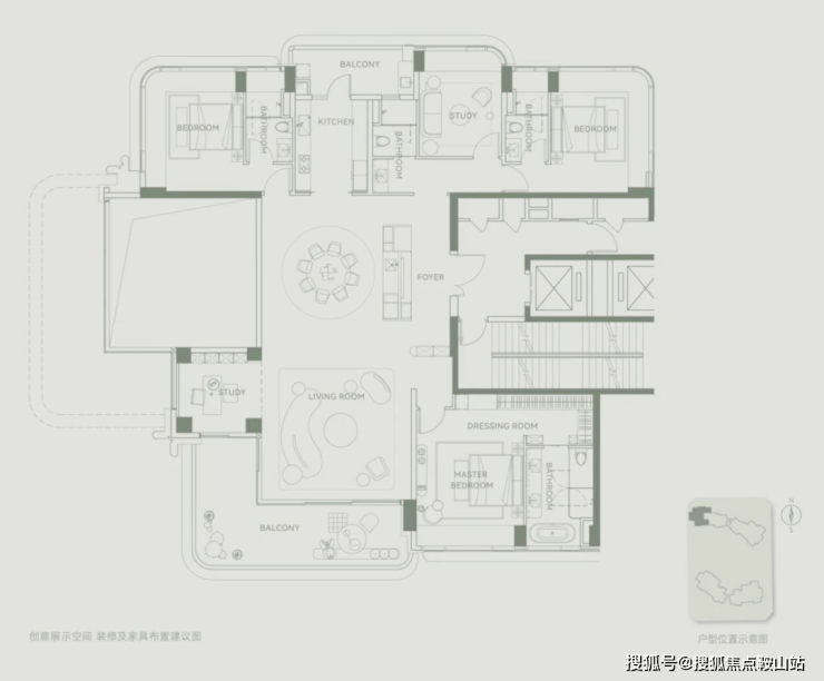 项目作为深圳湾稀缺T2纯板楼,并区别以往大平层的空间规划,以对话自然、平层墅居为尺,结合场景重构空间,带来新一代低密“空中墅岛”。