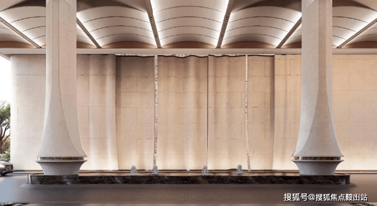 「后海招商玺」车行大门做了殿堂级落客区,设有天幕和水景,非常具备归家仪式感。