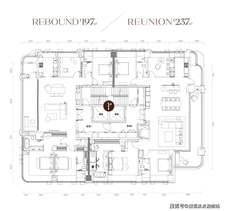 今年首开1栋的小高层住宅,约42套197-237㎡四房大平层。