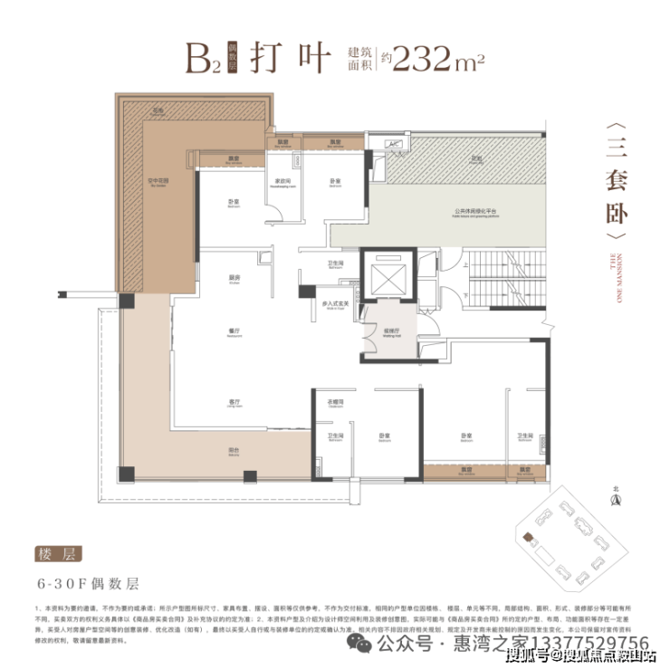 建面约 232㎡户型:得房率超 125%,实际使用面积堪比传统 340㎡住宅,空间性价比远超常规项目。采用 L 型设计,大概有 70㎡空中露台,拥有 270° 环幕视野,采光与视野双重升级。折算单价约 2.16 - 2.63 万元 /㎡,总价在 498 - 608 万之间。