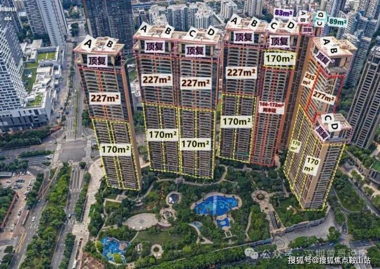 - 每层固定此三类,户户朝南/东南,部分看中心河、深圳湾海景;无其他面积段混层