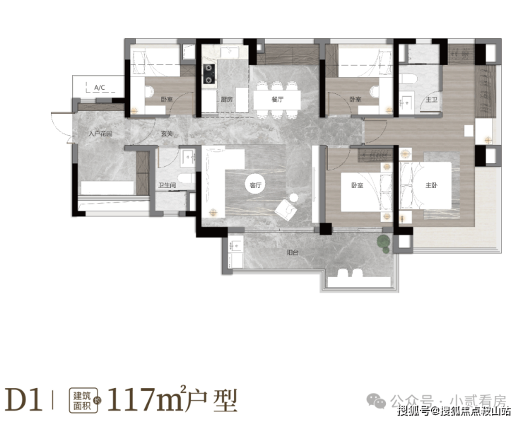 入户花园、6m大横厅,南向面宽达到约16m,主卧270°转角飘窗。