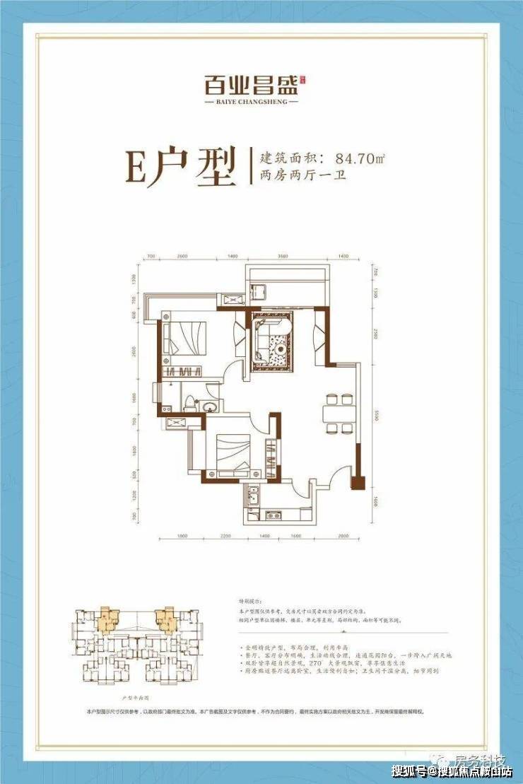 E户型 两房两厅一卫 建筑面积84.70㎡
