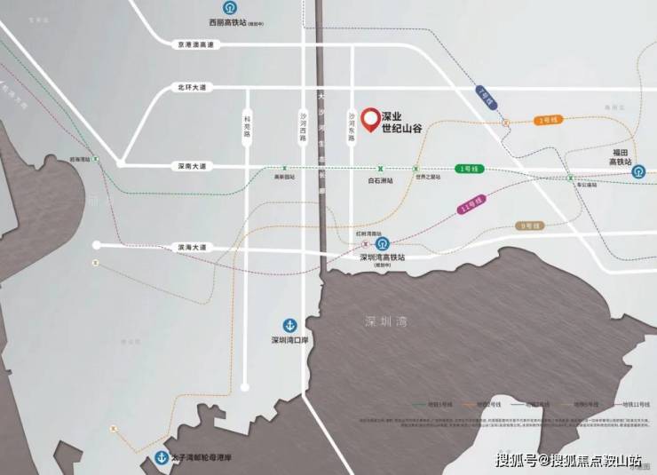 深业世纪山谷落址南山区侨城板块核心,地处深湾中轴,周边四大总部基地环伺,占位侨城核芯C位,坐享南山科创与人文双重发展红利。紧邻沙河东路等城市干道,接入滨海大道等交通路网,临近地铁1号线白石洲站,在建29号线白石洲北站建成后将进一步提升通勤便捷度,便捷通达深圳湾、后海、科技园等核心区域,兼具高端居住与发展潜力。
