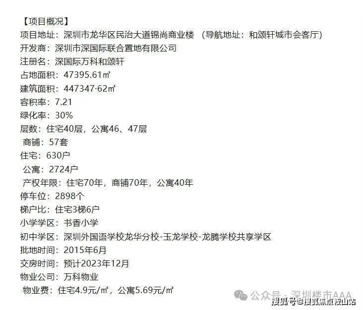 深国际万科和风轩属于龙华梅林关旧改项目,项目位于龙华区民治大道COCO city旁,总占地面积约9.6万㎡,计容建面约49万㎡。涵盖约24.6万㎡住宅(含保障房)、11.2万㎡公寓、7.8万㎡办公和3.5万㎡商业等于一体的商住综合体。