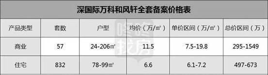 深国际万科和风轩此次共备案889套房源,其中住宅832套,户型建面约78-99㎡,均价6.6万/㎡,单价区间在6.1-7.2万/㎡;商业57套,建面24-206㎡,单价区间在7.5-19.8万/㎡。预售总面积78774.76平方米。