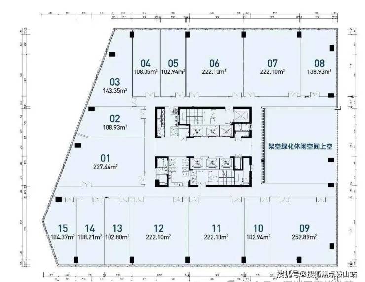 为办公,低区为商业,标准层建面约2400㎡,层高4.5米。