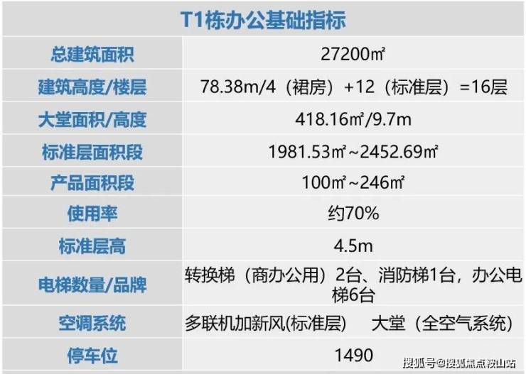 T1栋办公建筑面积约27200㎡,楼高约78米(限高100米),其中5-16层