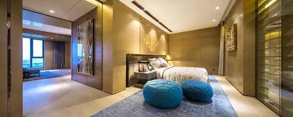 主卧衣帽间设计师汲取国际时装秀T台灵感,合宜的运用空间配置及光线铺陈,采用温润的木质元素结合质感透明镀膜的玻璃,塑造起空间的温度,并籍由精心营造的个人时装Show休闲氛围。