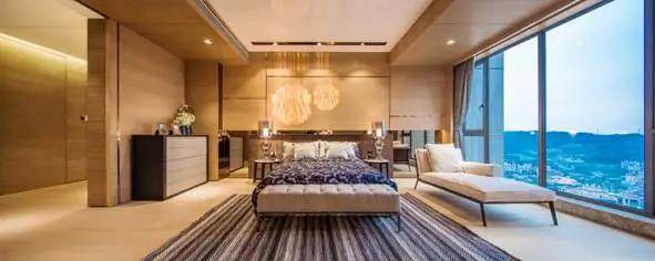 次卧室为浅木色墙面,隐含床头墙面上的灯饰造型,别出心裁,设计师以干脆利落的设计手法,营造出温暖舒适的睡眠空间。