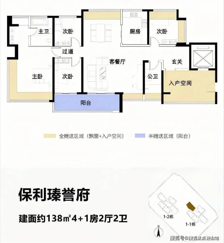 4梯5户带独立电梯厅,面积为114-122-138-143㎡,最大使用率108%,最大赠送面积接近44㎡。