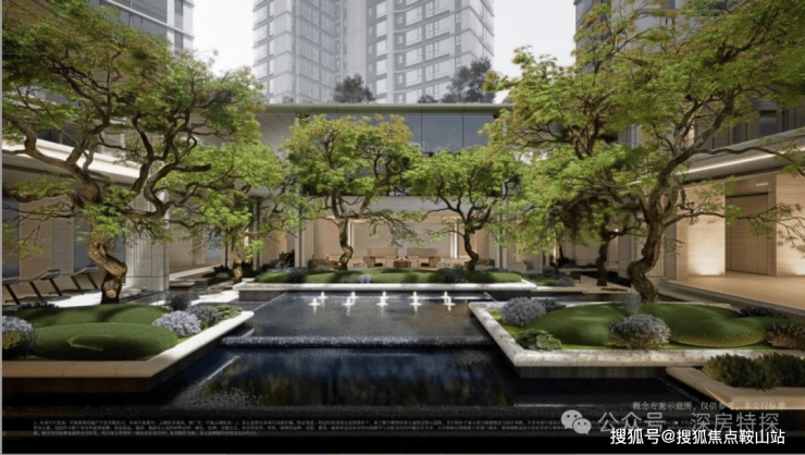 板上,则是私属的静谧居住浮岛,塔楼一字排开,享宽阔楼距与全景视野。浮岛泳池与立体园林,共同营造空中山水度假谧境。