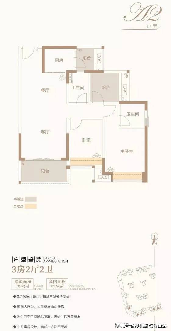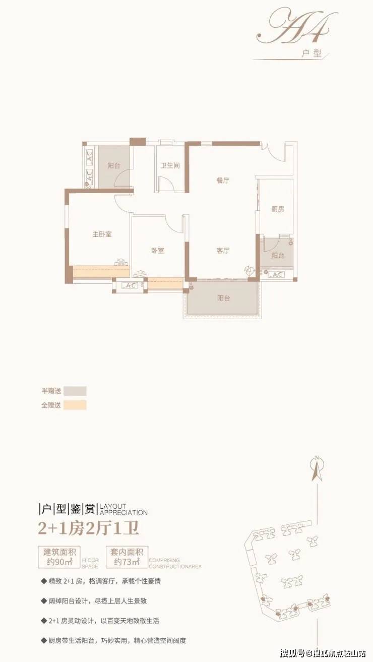 ④ 2+1房2厅1卫/约90平方米/阔绰阳台,尽揽高贵