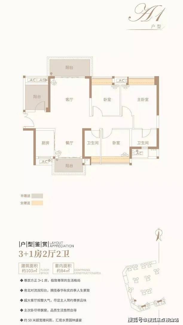 ① 3+1房2厅2卫/约103平方米/南北对流双阳台