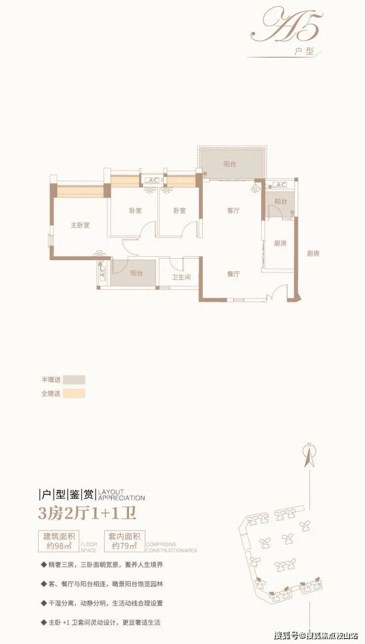 ⑤ 3房2厅1+1卫/约98平方米/精奢三房,面朝宽景