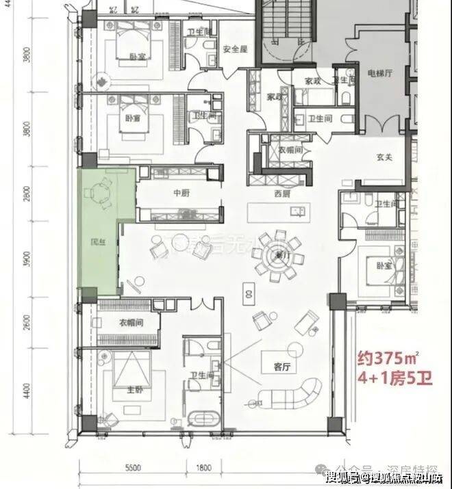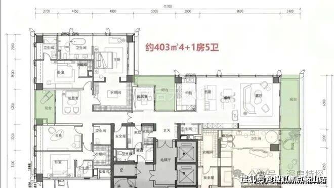 · 370-375㎡户型: 4+1房五卫设计,配备家庭厅和家政套间,适合有多样化生活需求的高净值家庭。
