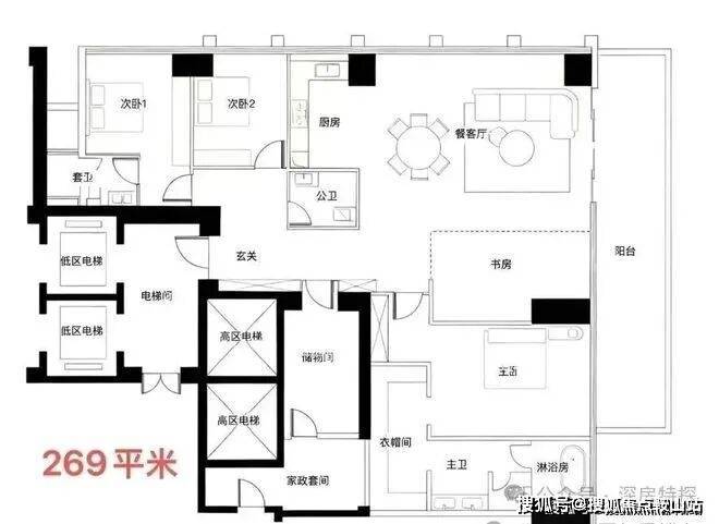 · 269-294㎡户型: 通常是四房以上大户型,注重家庭互动空间与个人私密空间的结合。
