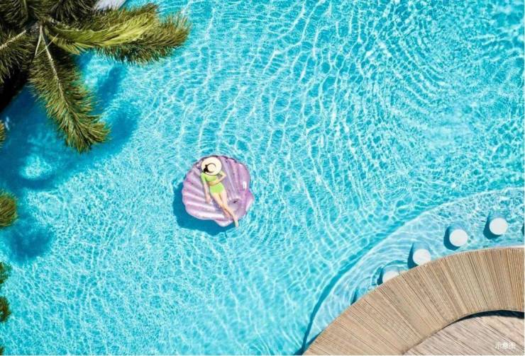 超长约30米泳道,搭配池底涌泉,层层涟漪,营造海浪波光粼粼的度假奢感。