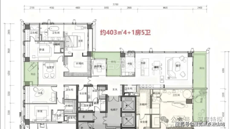 · 1050㎡顶奢大平层:位于顶楼的Penthouse,堪称深圳住宅的巅峰之作,堪比世界级豪宅。