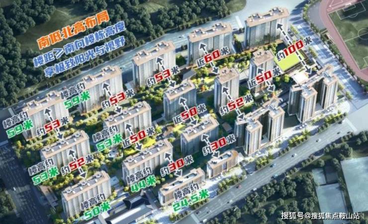 层高24.5米-59米,高8-20F,楼间距最小的是30米,最大的达到了100米;