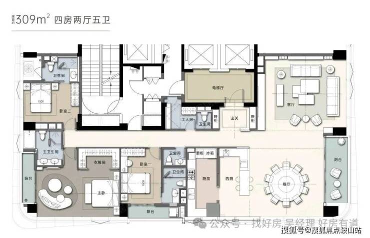 · 户型亮点:全功能主卧套间+父母套间+小孩房+工人房的完整配置,媲美家族大宅