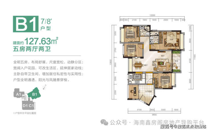 B1户型(7#8#):五房两厅