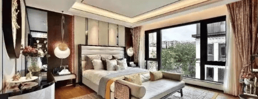 项目取法皇家院落规制,通过威仪府门、镇宅石狮、尊荣门匾、名园造景等方式,将传世家族的威仪展现得淋漓尽致。一府宅门,252颗铜制鎏金“浮沤钉”,开阖磅礴气势;镇宅石狮,采用法国金花干挂天然石材,重达上吨,器宇轩昂;德系品牌 SCHUECO 系统门窗,双层中空 LOW-E 玻璃,营造丰盈与外、安静于内的家族生活。