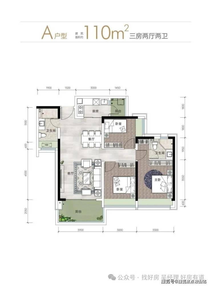 2. A户型(110㎡ 三房两厅两卫)