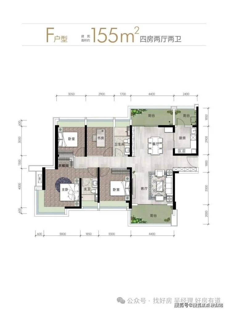 5. F户型(155㎡ 四房两厅两卫)