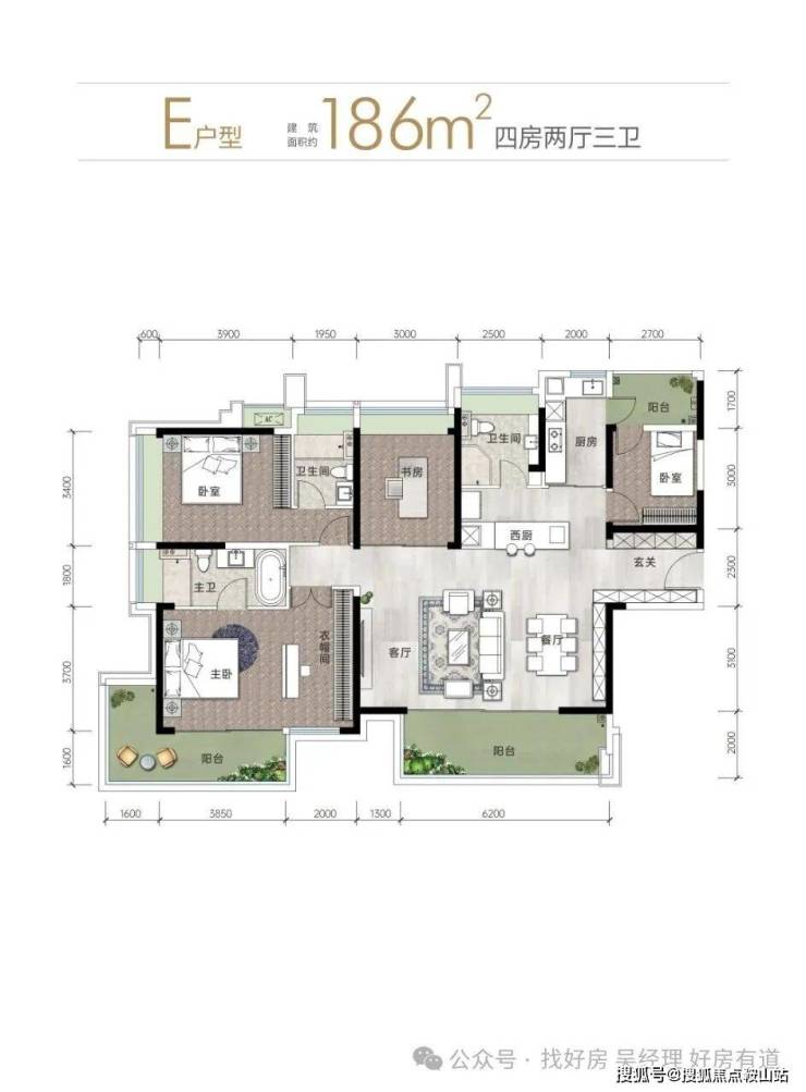 6. E户型(186㎡ 四房两厅三卫)
