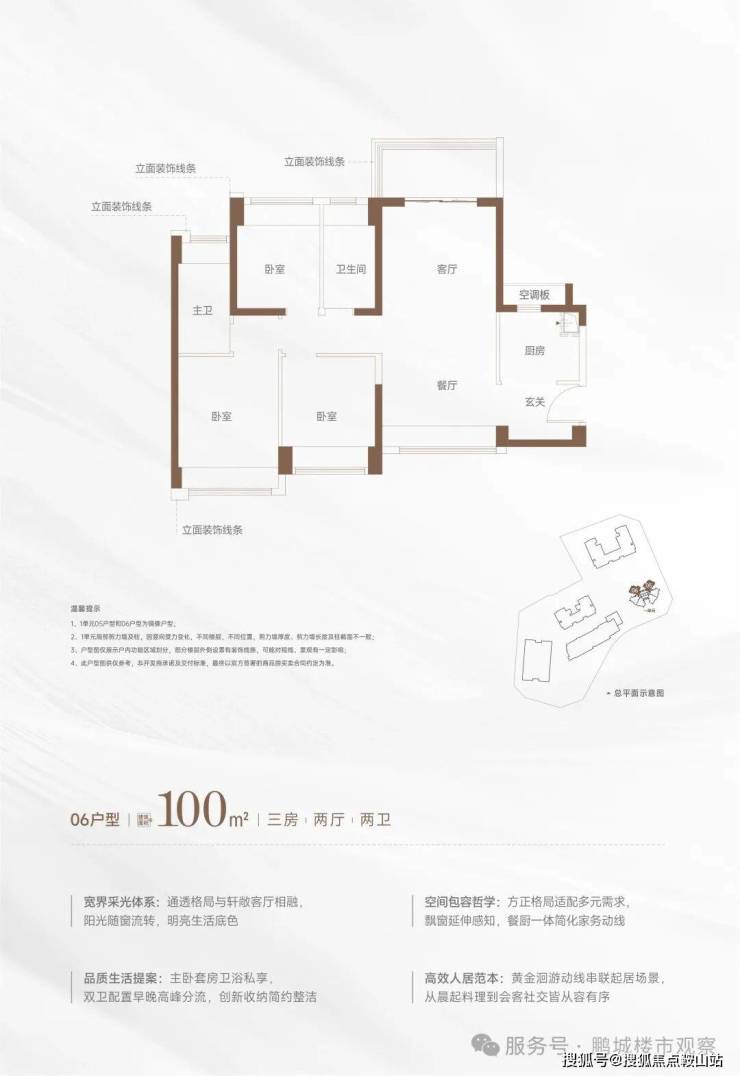 星河星悦云邸星悦 100 户型为建面 100㎡的 3 房 2 厅 2 卫