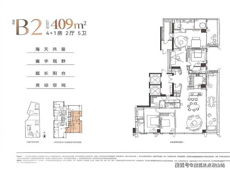 · 高区39-50层起是约349-427㎡4+1房五卫+家庭厅+家政套间;