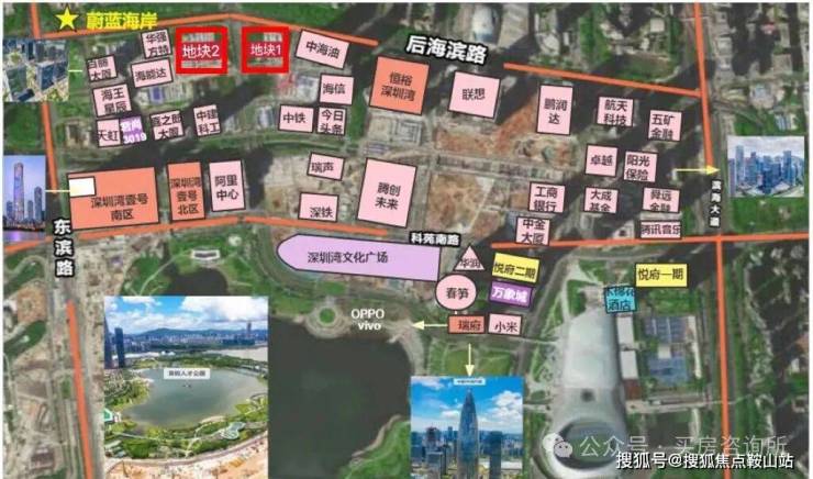虽然大区域在深圳湾,但这个具体位置其实有点靠老后海区域,因为处于整个后海总部基地的最西边,与二十年前的后海老牌大社区蔚蓝海岸二期三期隔后海滨路相望。