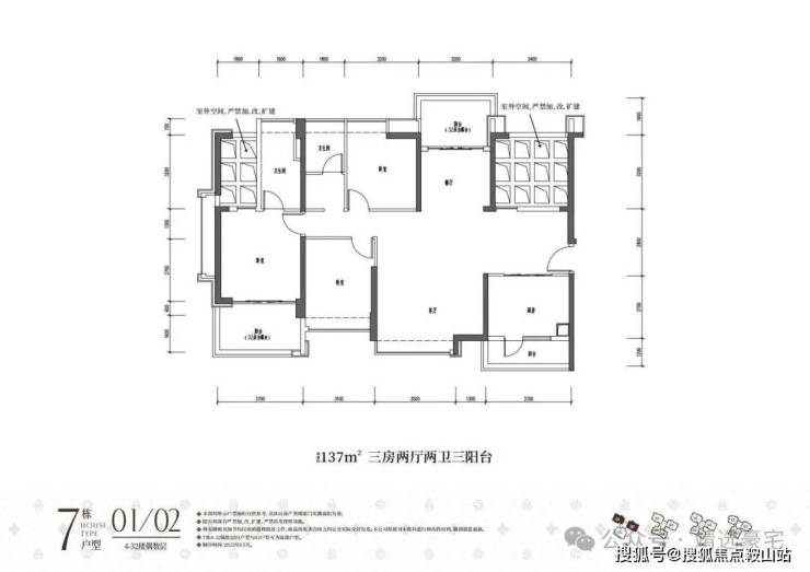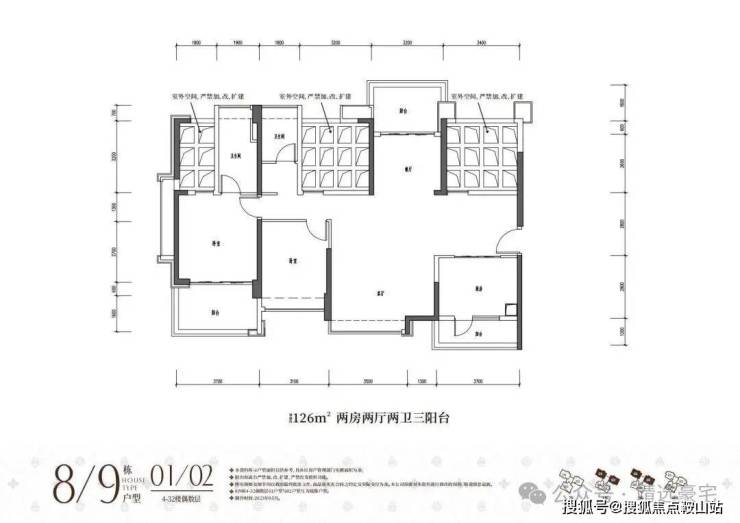 空间革命:两梯三户低密配置,全南向户型搭载多阳台露台,拓展率达90%以上
