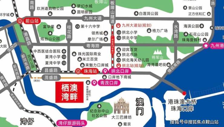 項目臨近輕軌珠海站,50多分鐘直達廣州南,在建的廣州地鐵18號線拱北站亦在附近,跨境通勤、灣區出行都十分便捷;周邊有拱北口岸免稅店、來魅力口岸城等商圈,夏灣小學、珠海市第二人民醫院等生活配套齊全,完全能滿足澳門家庭的日常需求。