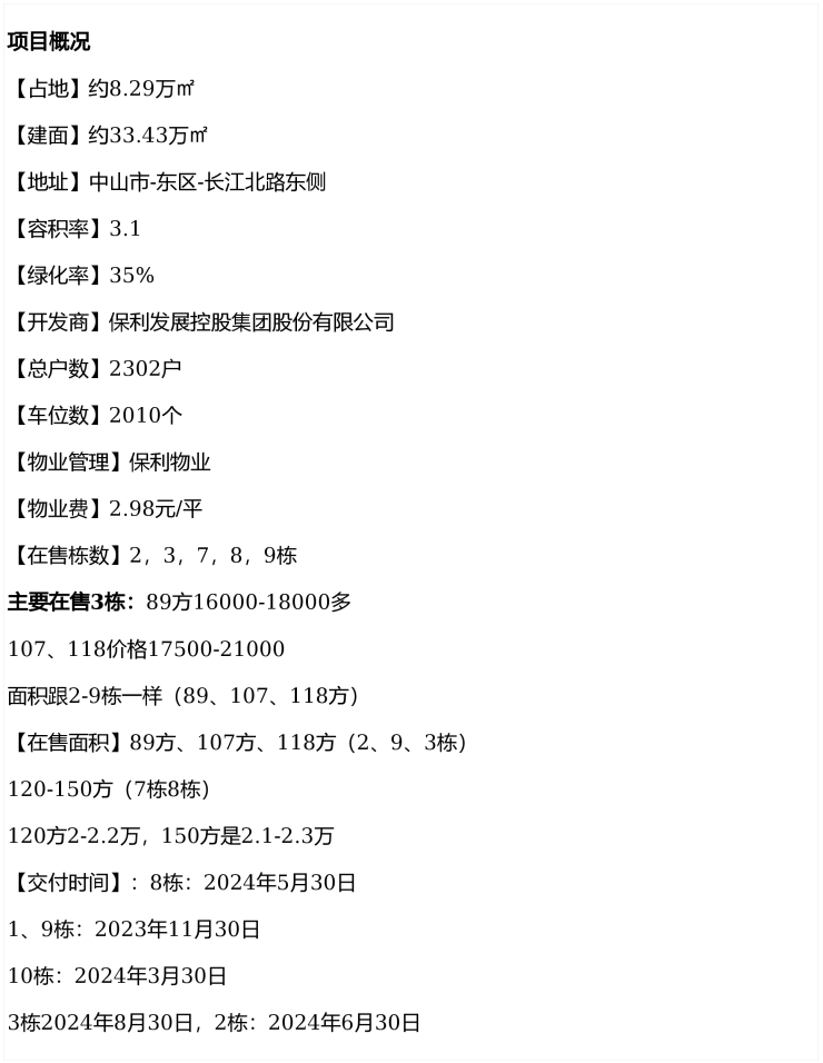 🔴中山保利天珺楼盘全面咨询通道正式开启!致电400-8028-628即可获取项目全维度详情,涵盖四大核心板块:
